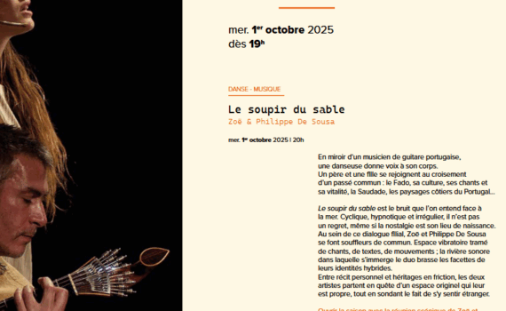 le 1er octobre prochain à partir de 19h, avec en clôture un joli moment : un père musicien portugais et sa fille Zoe De Sousa danseuse et chanteuse de fado… Gratuit – sur réservation par téléphone au 03 27 […]