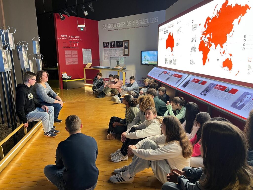 Les sept classes du collège Descartes Montaigne de Liévin ont effectué des sorties pédagogiques au Musée de la Bataille de Fromelles les mercredis 5, 12 et 19 novembre. Ces visites s’inscrivent dans le cadre de leur séquence de travail sur la Première Guerre Mondiale, faisant suite à leur journée